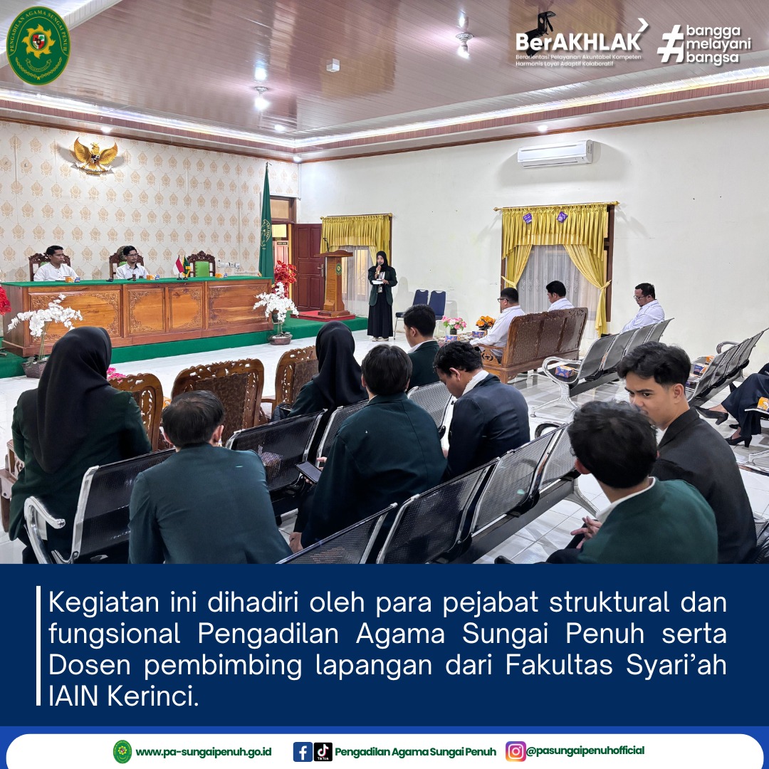 13 Oktober 2025, Pengadilan Agama Sungai Penuh mengucapkan terima kasih dan apresiasi yang setinggi-tingginya kepada adik-adik mahasiswa dari IAIN Kerinci yang telah melaksanakan kegiatan magang di lingkungan kantor kami.