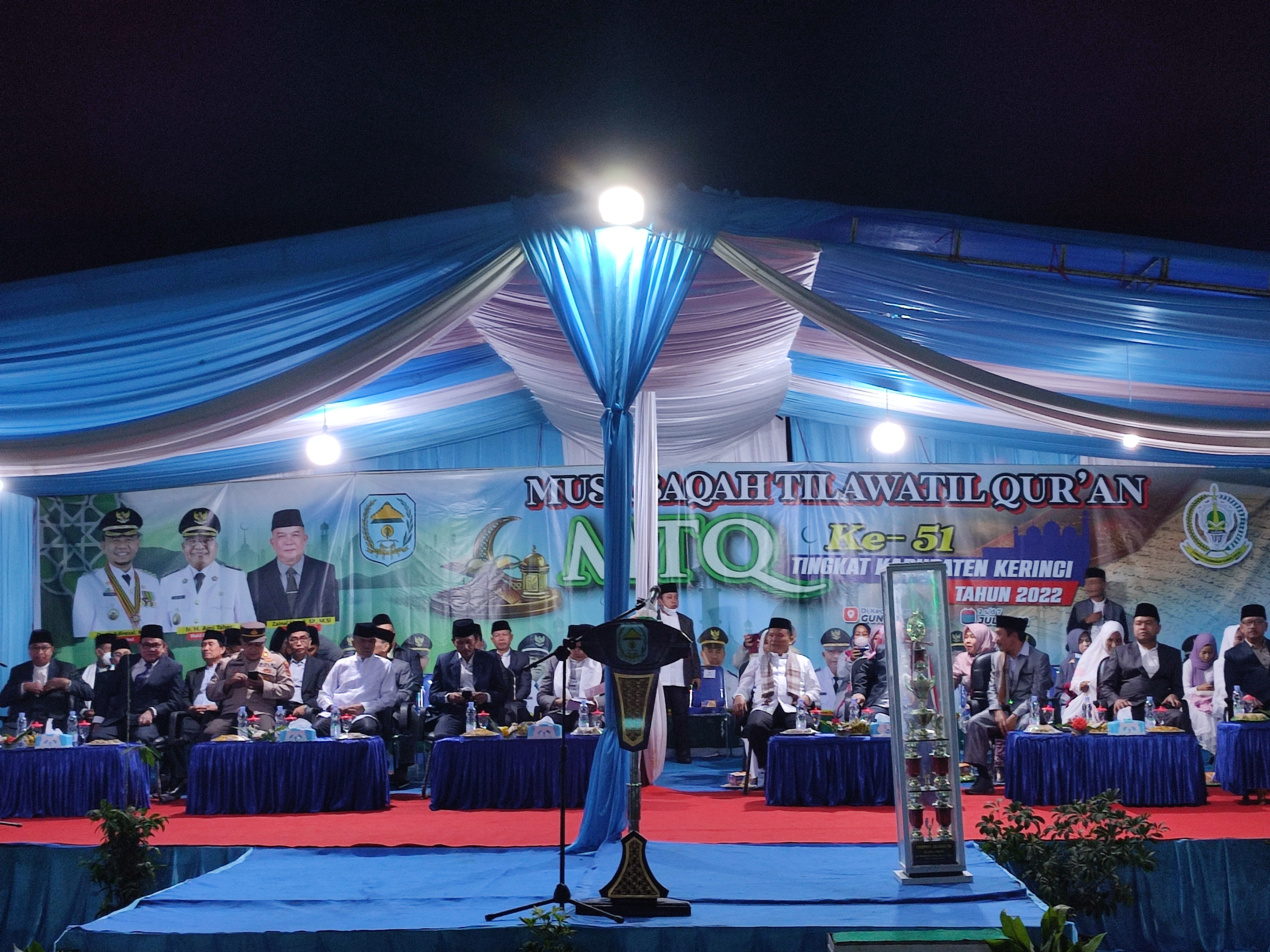 Kerinci - Bupati Kerinci beserta Forkopimda Kab. Kerinci dan Ketua PA Sungai Penuh hadiri acara pembukaan MTQ Ke - 51 Kabupaten Kerinci Tahun 2022